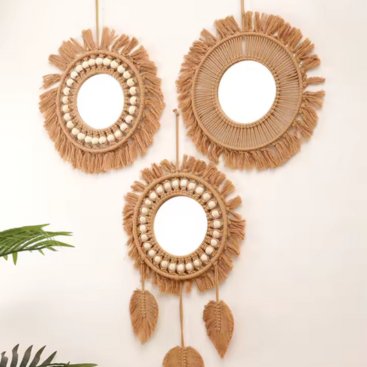 BohoMirror™ – 3er Set Handgewebte Wandspiegel im Boho-Stil