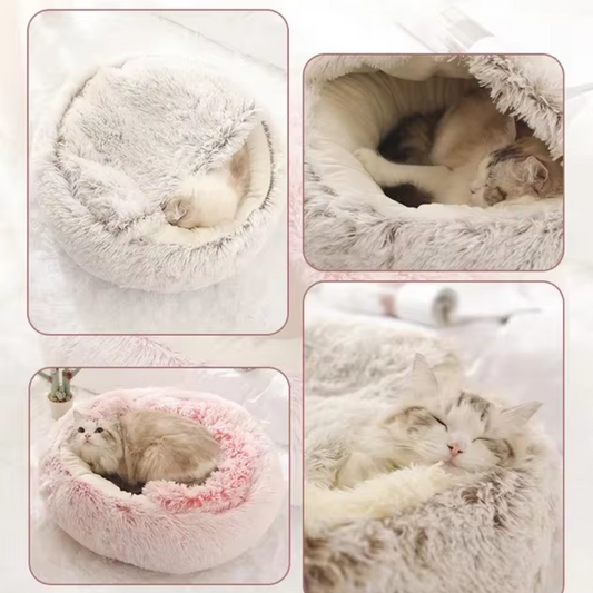PAWRELLE™ SnuggleCave – Geschlossenes Haustierbett mit Dach, Flauschig & Waschbar