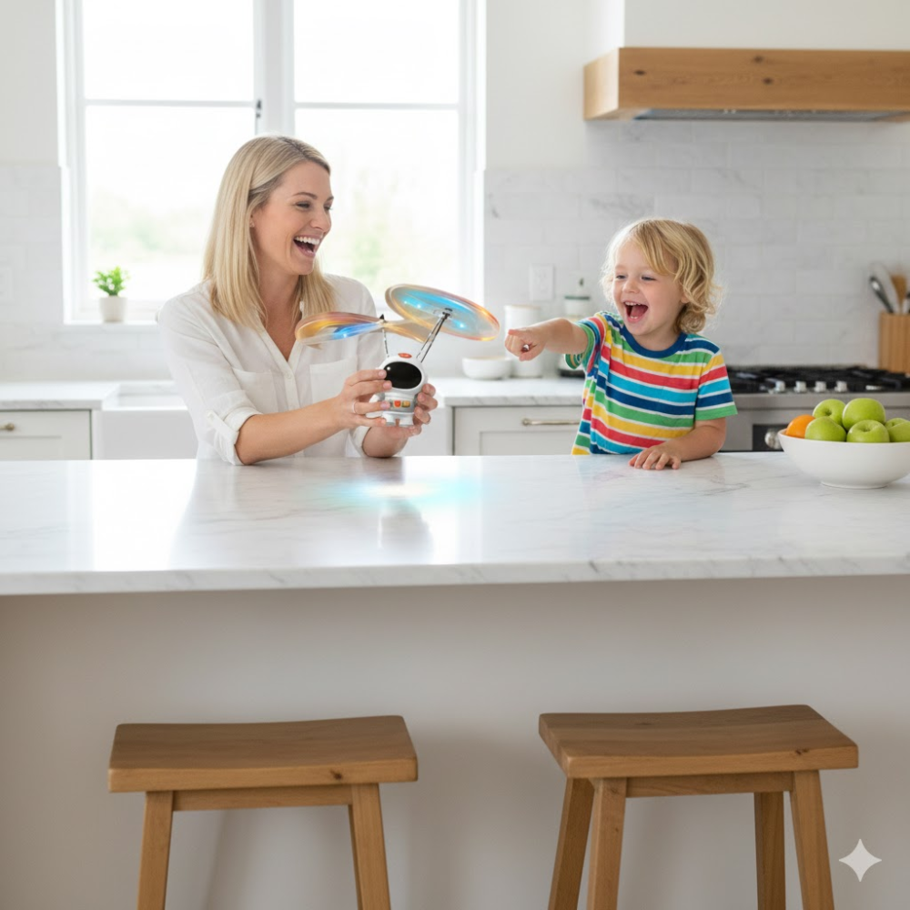 Stellen Sie sich vor, wie Ihr Kind mit leuchtenden Augen eine „telepathische“ Verbindung zu seinem schwebenden Begleiter aufbaut, der wie von Zauberhand auf jede Geste reagiert. Der AstroFloat™ ist weit mehr als eine Maschine; er ist ein „Imagination Nurturer“, der die Weltraumträume kleiner Entdecker zum Leben erweckt und eine Atmosphäre voller Wunder schafft, besonders wenn die LED-Lichter im gedimmten Abendlicht sanft gegen die Wände strahlen. Für Schenkende bietet er das ultimative Erfolgserlebnis: Ein hochtechnologisches „Wow-Geschenk“, das sofort nach dem Auspacken funktioniert und das Kind zum strahlenden Kommandanten seiner eigenen Weltraummission macht. Es ist das Gefühl von purer Magie und Souveränität, das jedes Spiel in ein unvergessliches Erlebnis verwandelt.