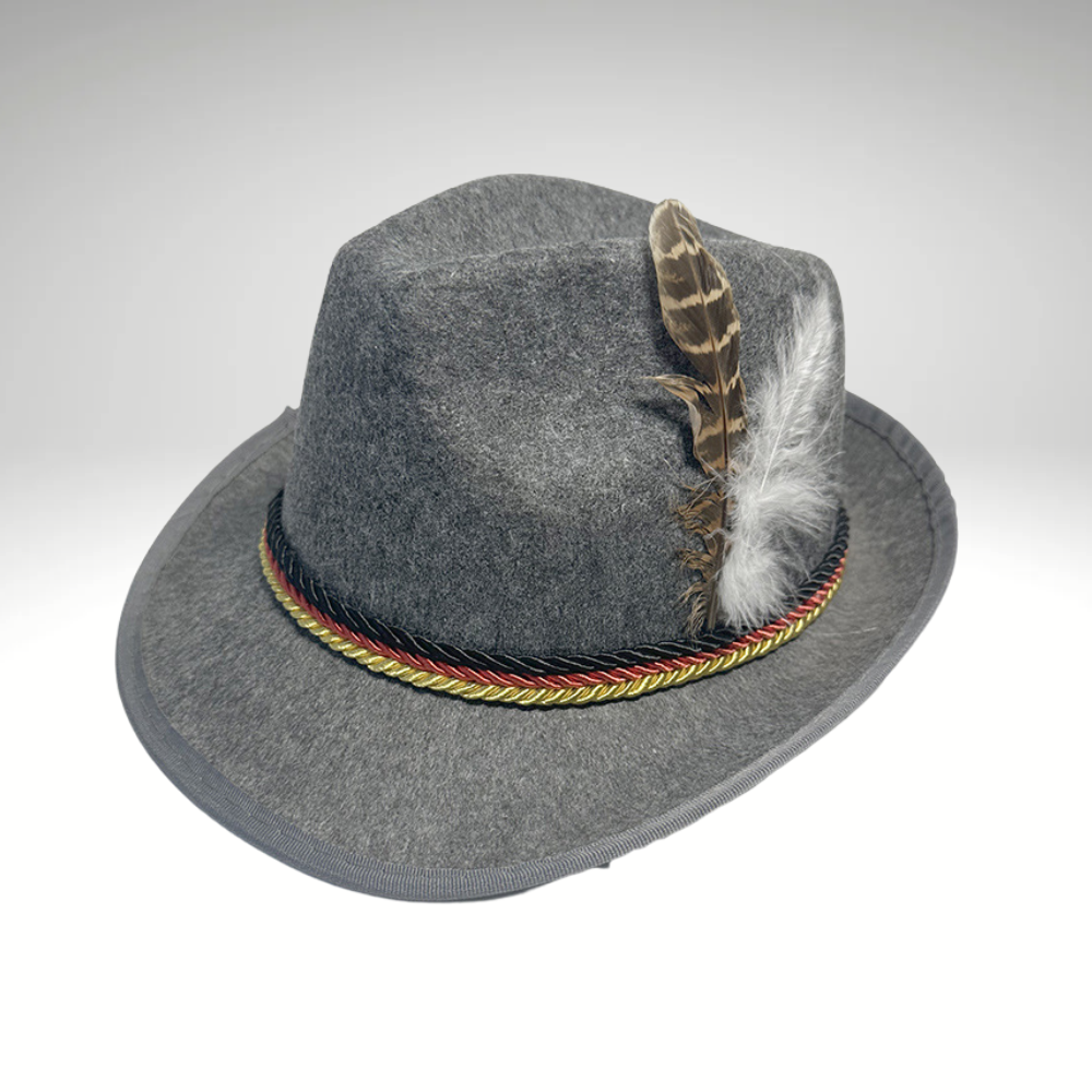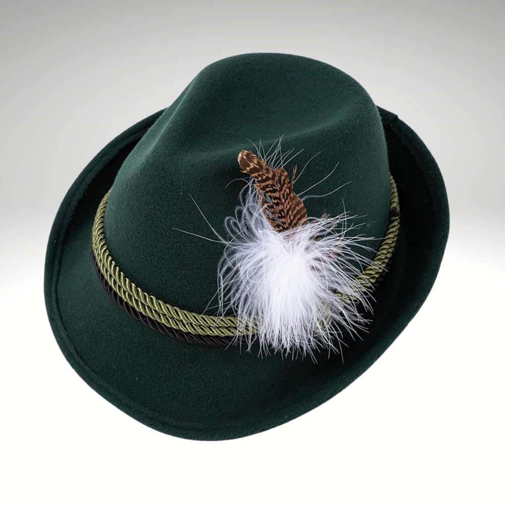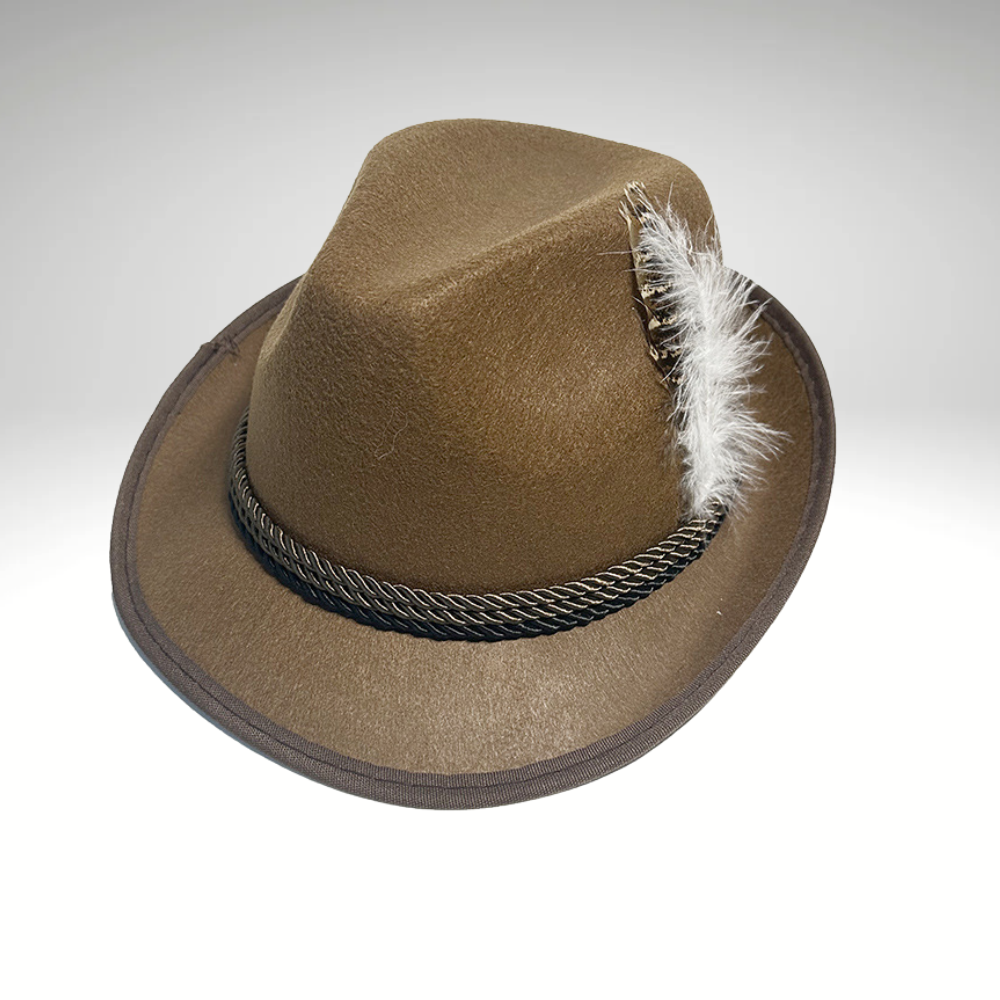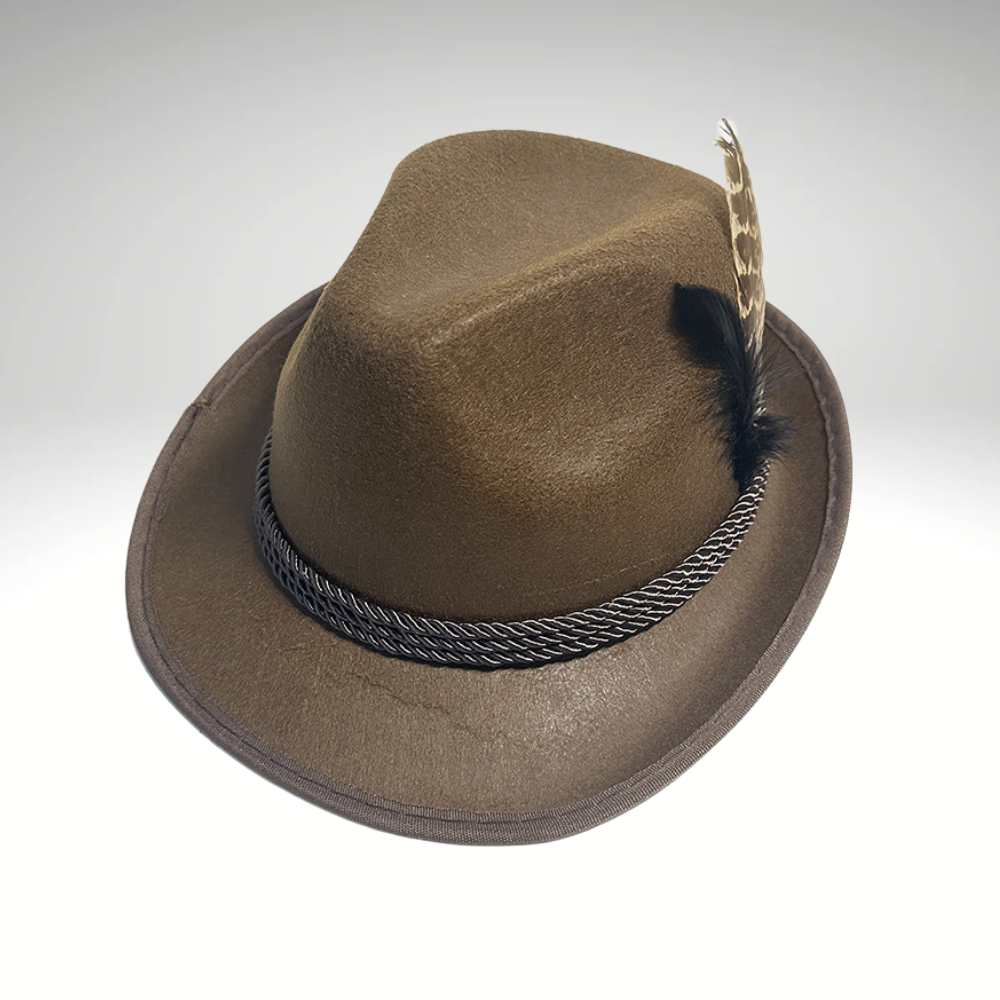 Authentisches Design mit Feder: Die klassische Form und die typische, dekorative Kunstfeder verleihen dem Hut seinen unverwechselbaren, traditionellen bayerischen Charakter und stilvollen Charme.