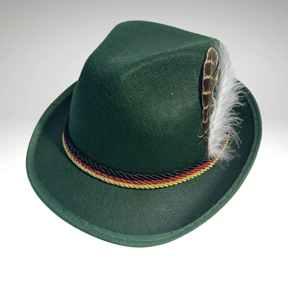 Der Bayernhut™ ist mit seinem klassischen Design und der typischen Gamsbart-Feder der unverzichtbare Kopfschmuck für jede gelungene Wiesn-Tracht. Hergestellt aus weichem, aber formstabilem Vliesmaterial, sitzt er angenehm leicht und komfortabel auf dem Kopf, ohne zu drücken oder zu scheuern. Ob Sie ihn zum originalen Dirndl oder zur Lederhose kombinieren – dieser Hut verleiht Ihrem Auftritt sofort authentischen bayerischen Flair und macht Sie zum Mittelpunkt des Festes. Er ist die perfekte Ergänzung für Volksfeste, Mottopartys und Karneval und ein garantiert beliebtes Geschenk.