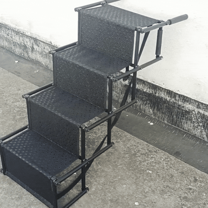 Stellen Sie sich vor, Ihr Hund betritt eine Konstruktion, die nicht wackelt oder nachgibt. Dank des robusten Stahlrohrrahmens trägt die CarPaw™ mühelos bis zu 120 kg (264 lbs) – ideal für den „Giant Breed Guardian“. Doch Stärke muss nicht sperrig sein: Für den „Space-Saving Traveler“ lässt sich die Treppe in Sekunden flach zusammenfalten und platzsparend neben dem Gepäck verstauen. Maximale Sicherheit bei minimalem Platzbedarf.