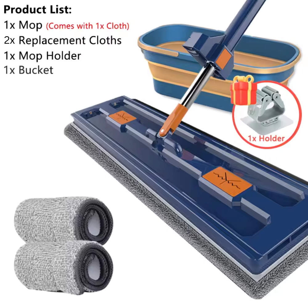 Das CleanFold™ Wischsystem vereint einen großen Flachmopp und einen praktischen Falt-Eimer in einer intelligenten Lösung für eine gründliche und hygienische Reinigung. Der 42 cm breite Mikrofasermopp entfernt Tierhaare, Staub und Schmutz effektiv von allen Hartböden, während der integrierte Abstreifer im Eimer eine berührungsfreie Auswringung ermöglicht. Der 360-Grad-drehbare Moppkopf erreicht mühelos schwer zugängliche Ecken unter Möbeln. Die längenverstellbare Stange schont zudem Ihren Rücken und der platzsparende Eimer macht die Aufbewahrung denkbar einfach.