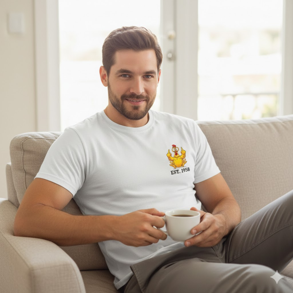 Manchmal möchte man der Welt einfach sagen: „Lass mich in Ruhe“, ohne dabei die Fassung zu verlieren. Doch Kleidung ist oft entweder langweilig oder unbequem. Das F-caw-f™ Hähnchen-Shirt ist Ihre humorvolle Rüstung für den Alltag: Mit dem frechen „Cheeky Chicken“-Motiv setzen Sie eine klare, unmissverständliche Grenze, noch bevor jemand den Mund aufmacht. Es ist das perfekte Kleidungsstück für den „Opinion-Proof“ Individualisten, der seine Ruhe schätzt und lieber den Stoff für sich sprechen lässt.