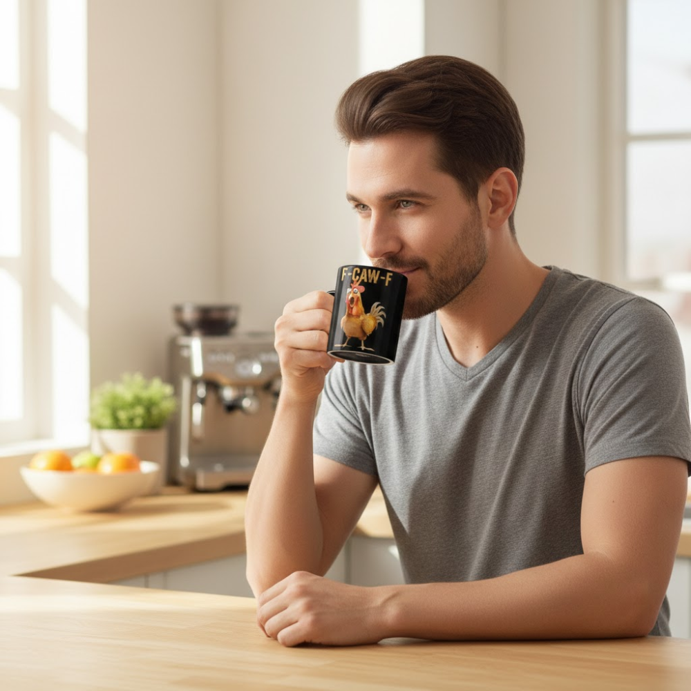 Für viele beginnt der Tag erst nach dem Koffein, und höflicher Smalltalk am frühen Morgen ist eine echte Herausforderung. Gleichzeitig sind gewöhnliche Tassen oft langweilig und sagen nichts über ihren Besitzer aus. Die F-caw-f™ Tasse ist Ihr persönliches Statement: Mit einer ordentlichen Portion Humor und dem frechen „Cheeky Chicken“-Design signalisiert sie Ihrer Umgebung augenzwinkernd Ihre Stimmung – ganz ohne Worte. Es ist der perfekte Begleiter für alle, die ihren Morgenkaffee mit einer Prise Attitüde genießen wollen.
