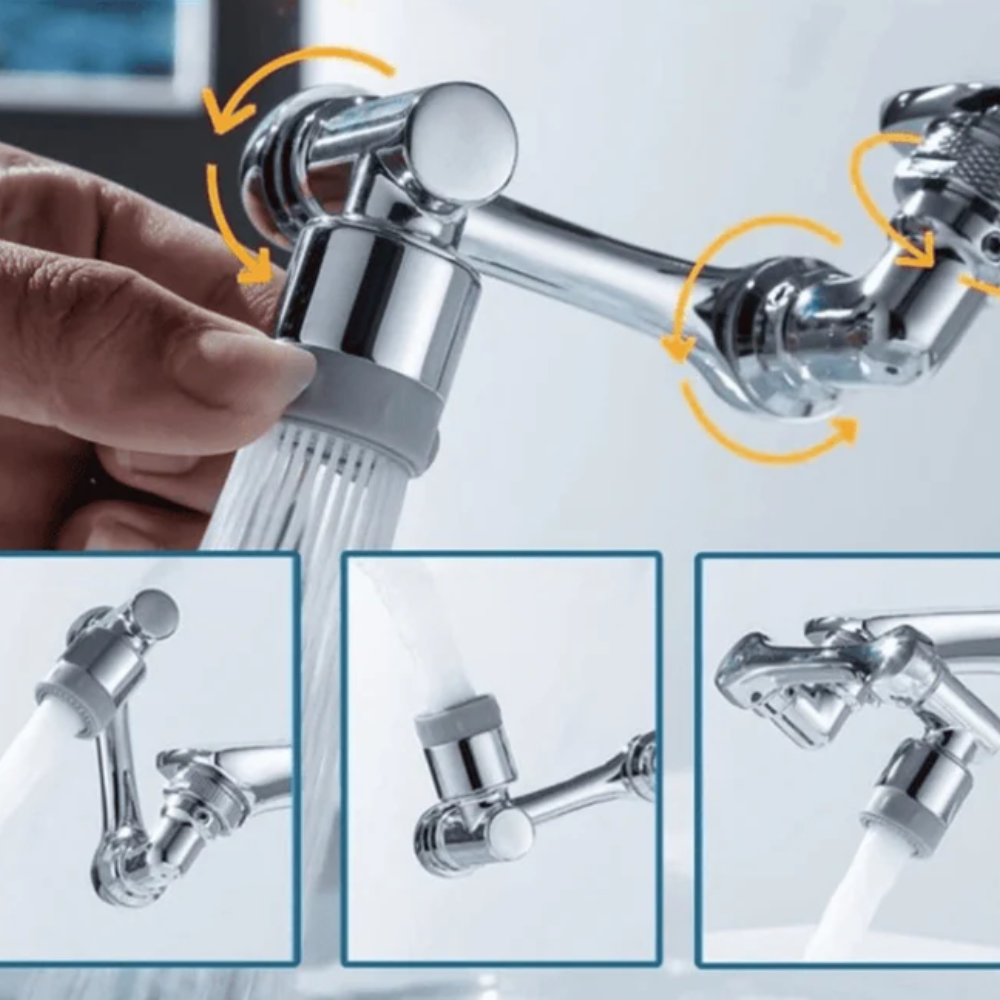 Der FlexFaucet™ bringt maximale Beweglichkeit in Ihre Küche oder Ihr Bad. Mit drei Gelenkpunkten lässt sich der Wasserhahnaufsatz um 1080° drehen und flexibel in jede Richtung bewegen. Ob zum Waschen von Obst und Gemüse, zum Reinigen des Beckens oder für die tägliche Hygiene – Sie haben immer die volle Kontrolle. Dank der robusten Materialien und der einfachen Installation ist dieser Aufsatz eine langlebige und praktische Ergänzung für jedes Zuhause.