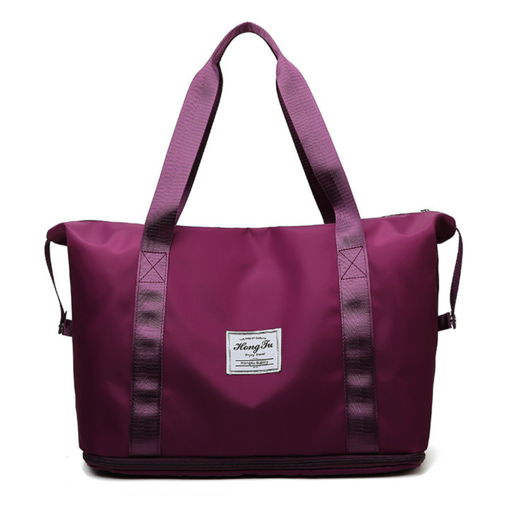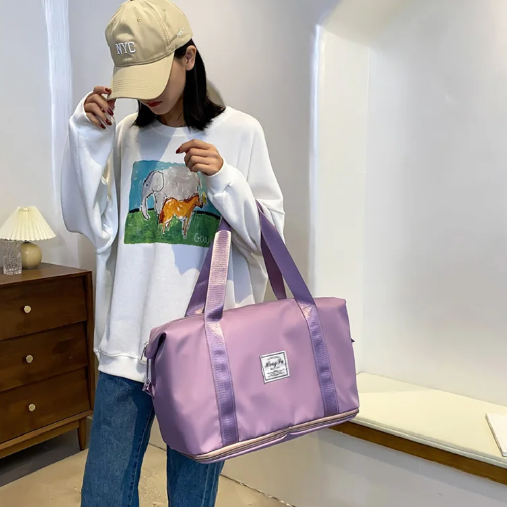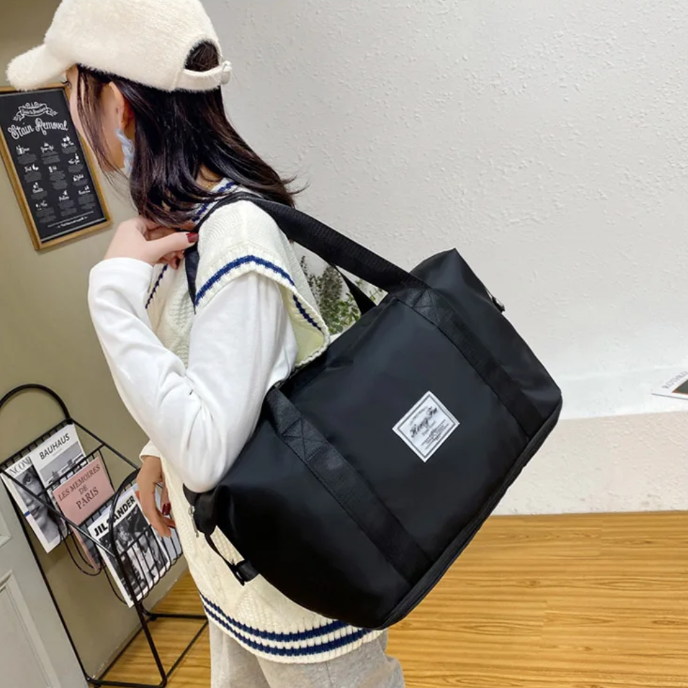 Die MagniFold™ Reisetasche ist der ideale Begleiter für Frauen, die Funktionalität und Stil auf Reisen, im Fitnessstudio oder beim Wochenendausflug vereinen möchten. Aus strapazierfähigem, wasserfestem Nylon gefertigt, schützt sie Ihre Sachen bei jedem Wetter. Dank der großzügigen Kapazität und smarten Faltfunktion lässt sich die Tasche kompakt verstauen, wenn sie nicht gebraucht wird – und bei Bedarf sofort einsatzbereit entfalten. Ob als Handgepäck im Flugzeug oder als elegante Sporttasche – MagniFold™ überzeugt durch Design und Vielseitigkeit.