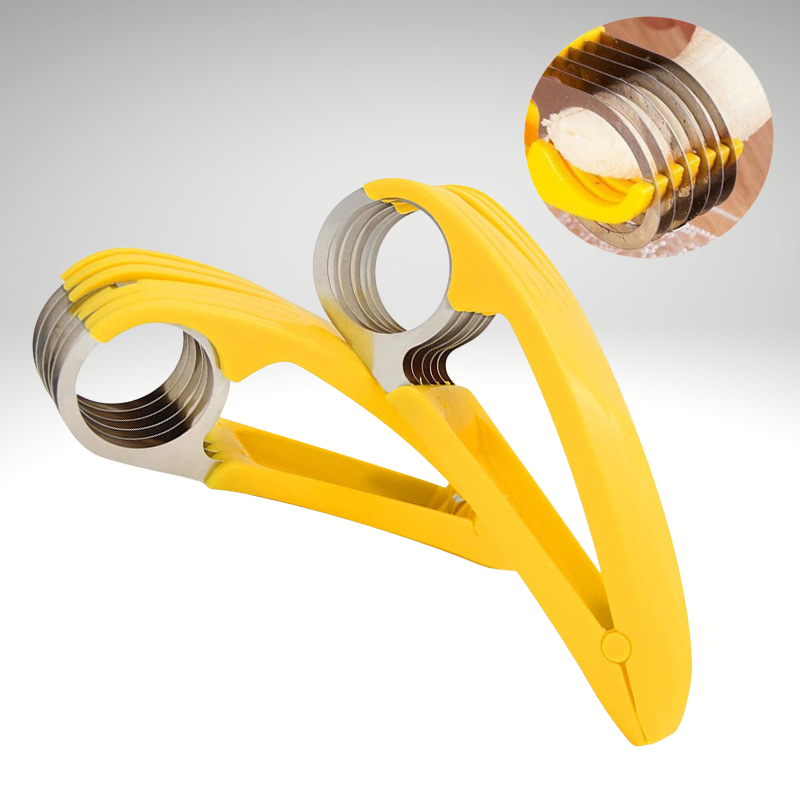Der FruitFix™ ermöglicht dir das mühelose Schneiden von Bananen in gleichmäßige Scheiben – ideal für Frühstückscerealien, Obstsalate oder Smoothies. Mit robusten Edelstahlklingen und einem griffigen Design ist er sicher im Einsatz, einfach zu bedienen und speziell auch für Kinder geeignet.