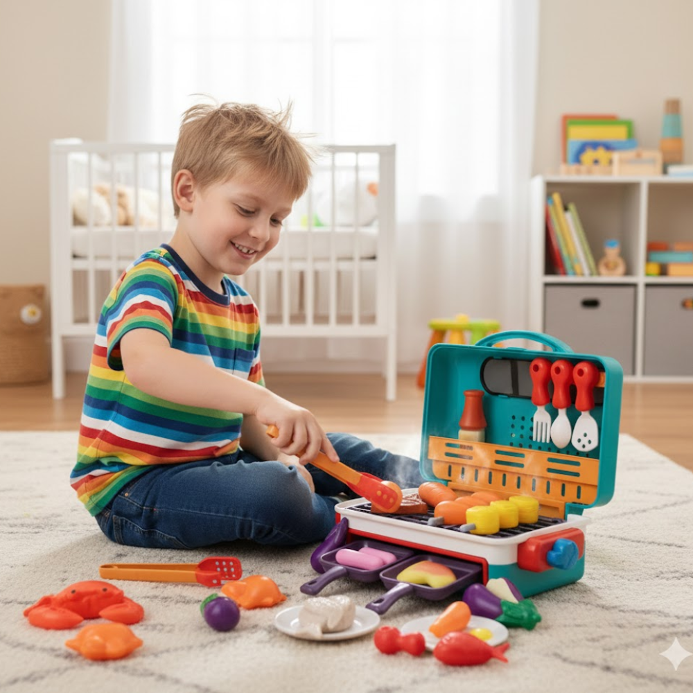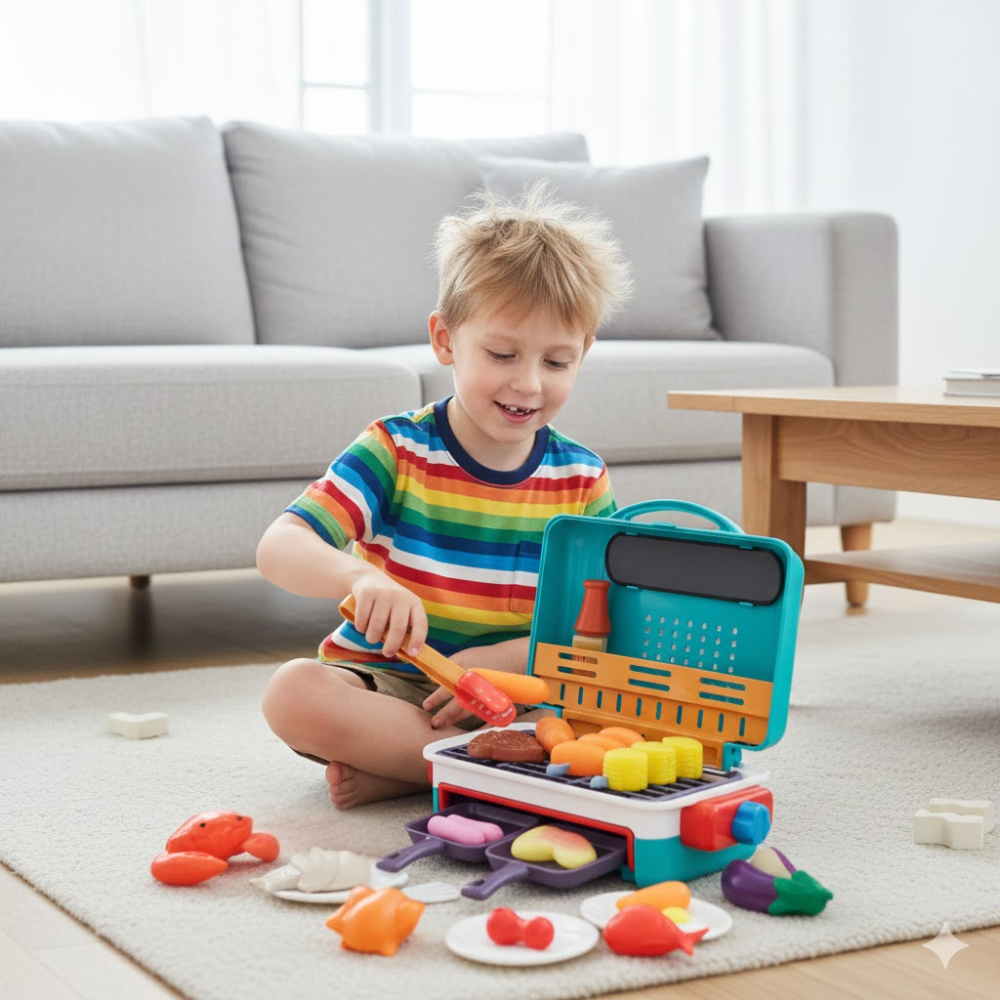 Stellen Sie sich vor, wie die Augen Ihres Kindes leuchten, wenn das Spiel-Essen auf dem Rost wie durch Zauberei die Farbe wechselt und realistische Grillgeräusche ertönen. Dieses Set ist weit mehr als nur ein Spielzeug; es ist eine Investition in die kognitive Entwicklung und Feinmotorik Ihres Kindes. Ob als spektakuläres Geschenk, das zum absoluten Highlight jeder Feier wird, oder als pädagogisch wertvolle Beschäftigung an einem ruhigen Nachmittag – der GrillFun™ schafft eine Welt, in der Lernen und magische "Wow-Momente" Hand in Hand gehen. Sie schenken damit nicht nur ein Produkt, sondern das Gefühl von Kompetenz und die pure Freude an der Entdeckung.