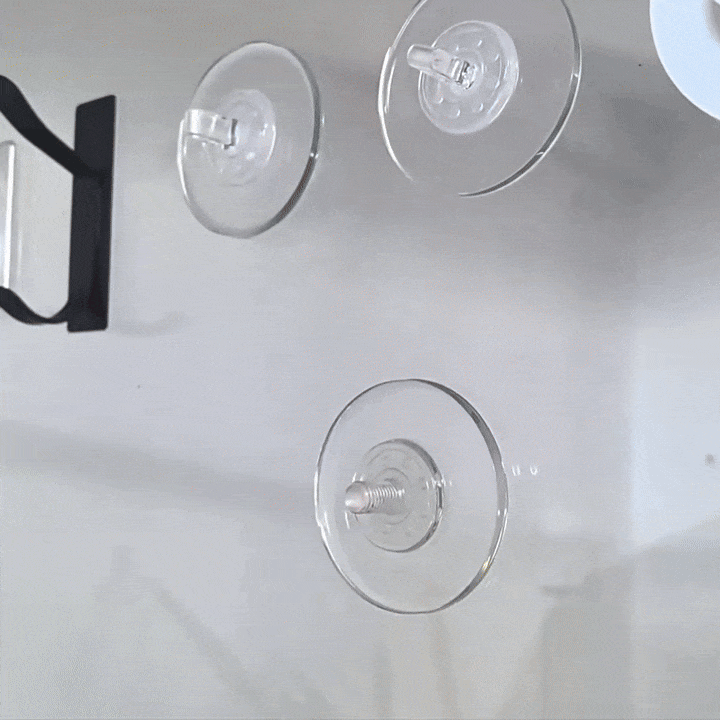 Der kraftvolle Twist-Lock-Mechanismus saugt sich fest an und hält selbst schwere, nasse Textilien sicher an der Wand.