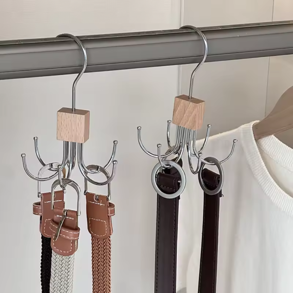 HakenFlex™ 6X – Platzsparender 360° Drehhaken für Gürtel, Schals & Accessoires