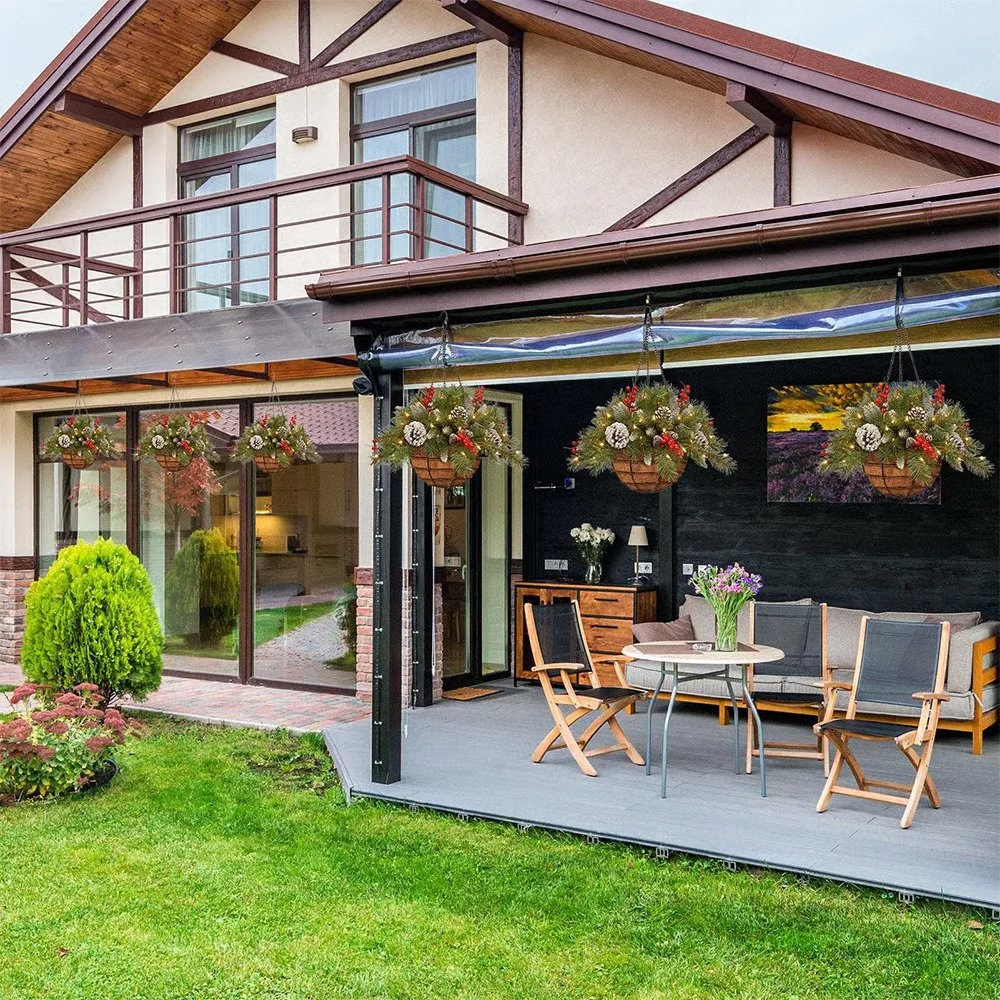 Dekorativ bepflanzt & wetterfest: Die Kunstzweige und weihnachtlichen Deko-Elemente sind UV- und witterungsbeständig für den dauerhaften Einsatz im Außenbereich.