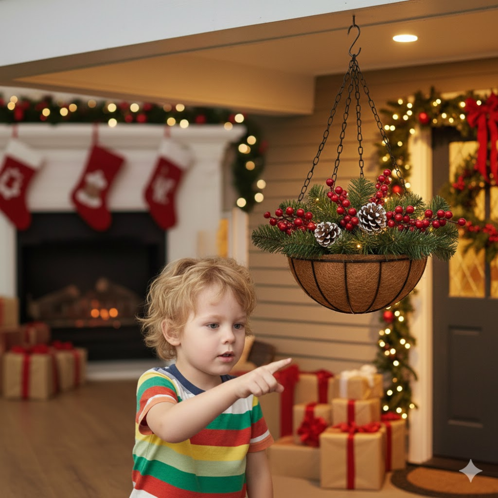 LichtKorb™ – Solar Weihnachts-Blumenampel mit LED-Glanz