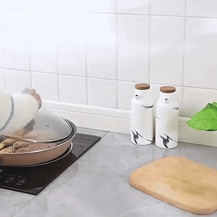 Kennen Sie das tägliche Chaos auf der Arbeitsplatte, wenn heiße Topfdeckel Fettringe und Wasserpfützen hinterlassen und Sie nach jedem Kochen die gesamte Küche wischen müssen?