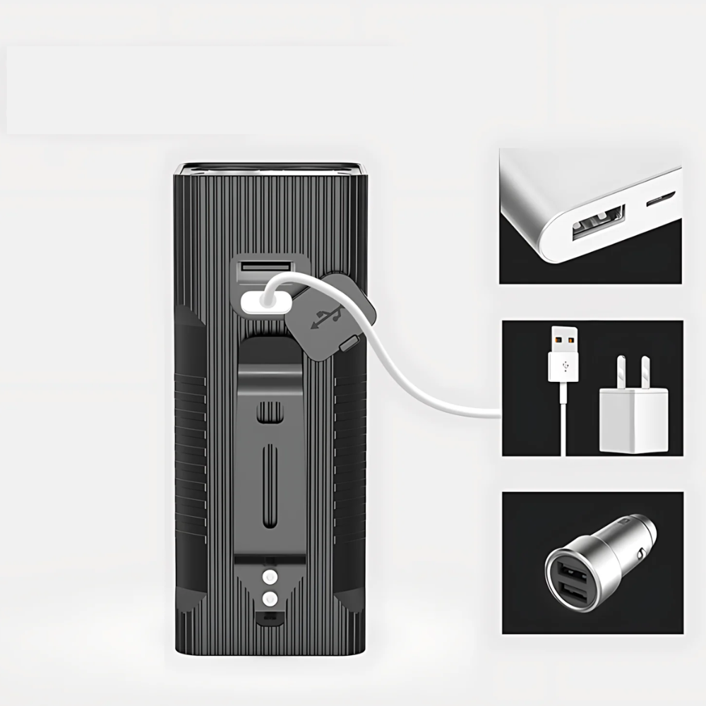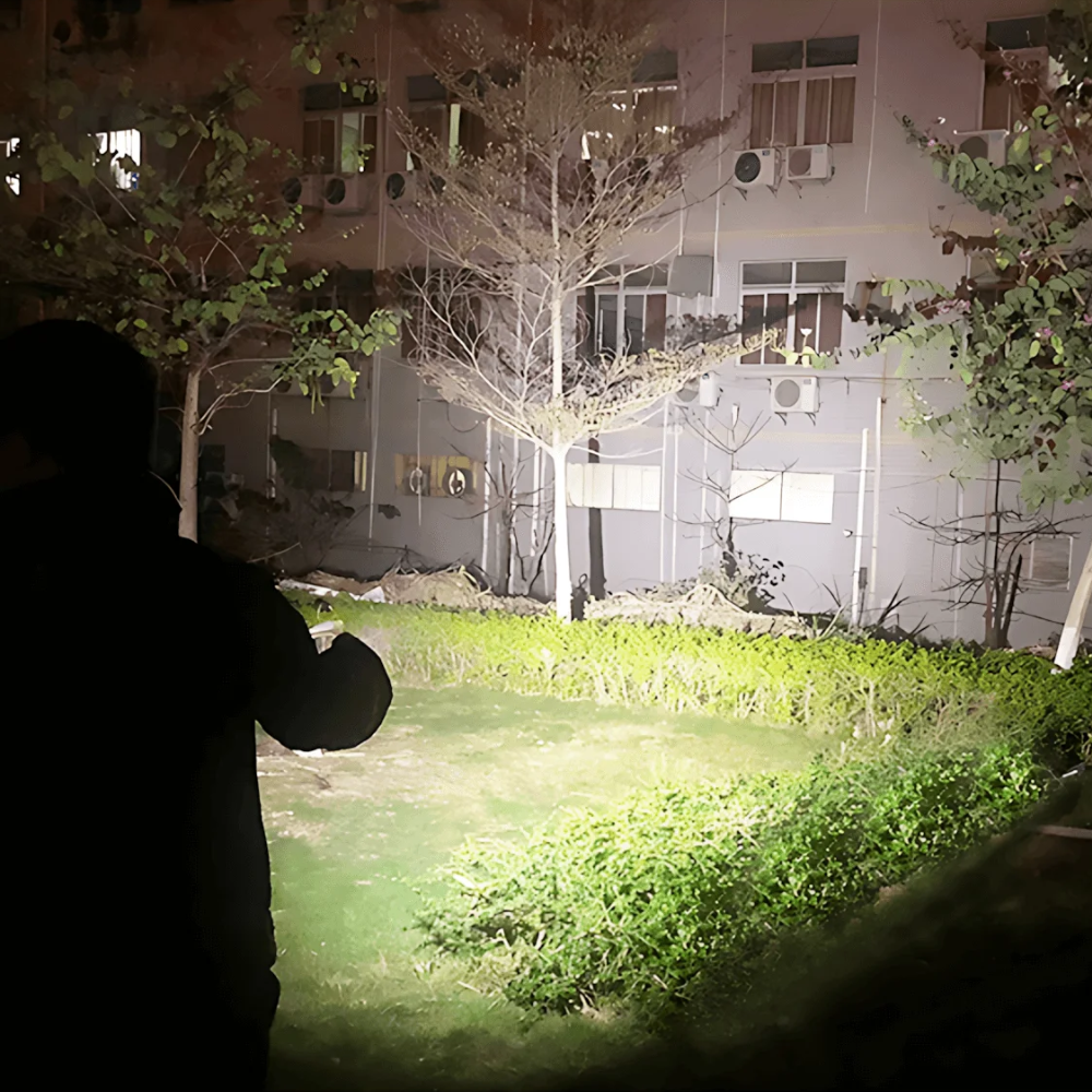Die LuminoX™ Taschenlampe setzt mit einer beeindruckenden Helligkeit von 10.000 Lumen und einer Reichweite von bis zu 500 Metern neue Maßstäbe für Leistung und Zuverlässigkeit. Ihr Gehäuse aus lufthahrtauglichem Aluminium ist stoßfest, wasserdicht und dient gleichzeitig als effizienter Kühlkörper für den Dauerbetrieb. Der leistungsstarke 12.800 mAh Akku gewährleistet eine lange Laufzeit, was sie zum perfekten Begleiter für nächtliche Fahrradtouren, Outdoor-Abenteuer oder professionelle Einsätze macht. Mit der LuminoX™ haben Sie die ultimative Kontrolle über die Dunkelheit.