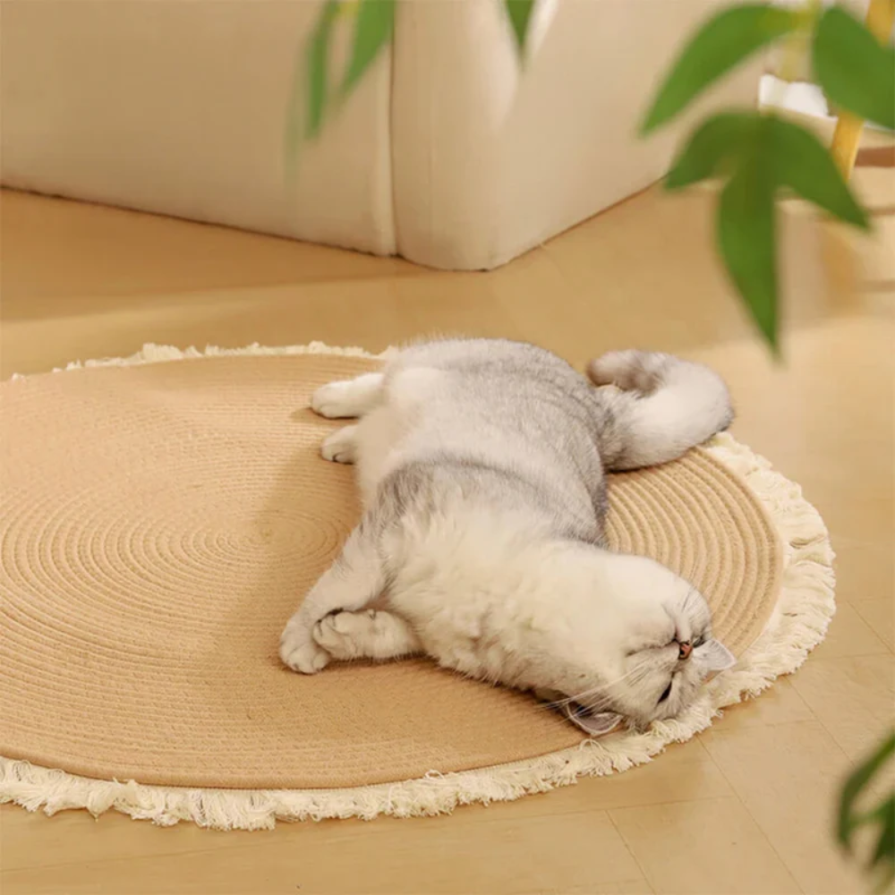 Der Lynja™ Kratzteppich verbindet skandinavische Ästhetik mit einer unwiderstehlichen Funktion für Ihre Katze. Handgewebt aus weicher Baumwollschnur mit eleganten Fransen, ist er ein stylisches Deko-Element für Ihr Zuhause und die perfekte Alternative zu Möbeln und Teppichen. Die robuste Webstruktur lädt zum ausgiebigen Krallenwetzen ein, ohne zu fasern oder Haare zu ziehen. Leicht zu reinigen und in verschiedenen Größen erhältlich, fügt sich der Lynja™ nahtlos in Ihr Interior ein und schützt Ihre Einrichtung vor Kratzern.