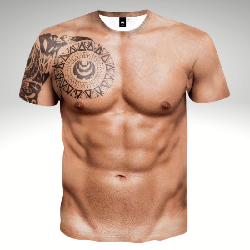 Das MuscleSkin™ T-Shirt sorgt für einen verblüffenden Effekt: Gedruckte Muskelpartien und realistische Tattoos lassen dich wie ein durchtrainierter Bad Boy aussehen – ganz ohne Training. Ideal für Festivals, Fasching, Junggesellenabschiede oder einfach zum Spaß.
