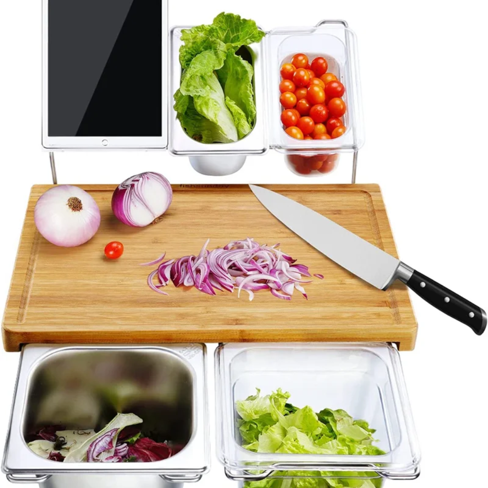Prepmate™: Das Bambus-Schneidebrett mit integrierten Edelstahl-Schalen