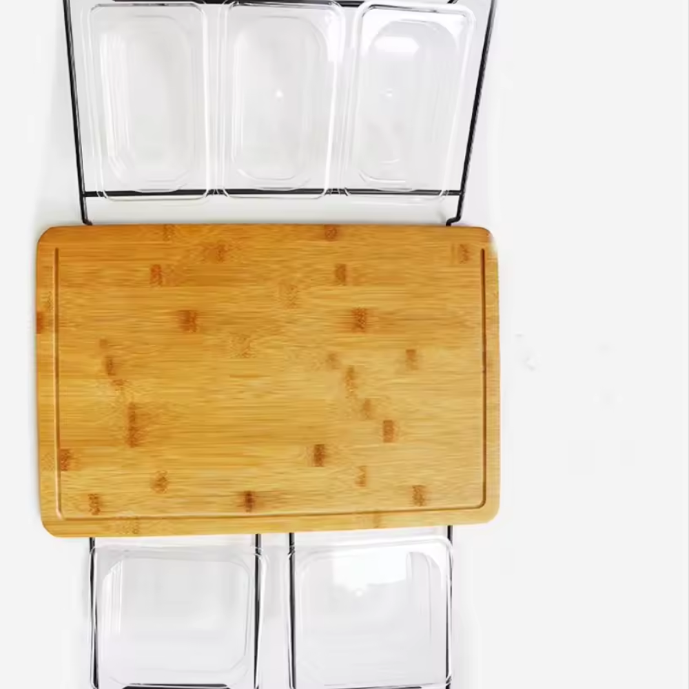 Prepmate™ – Bambus Schneidebrett mit Edelstahl-Schalen