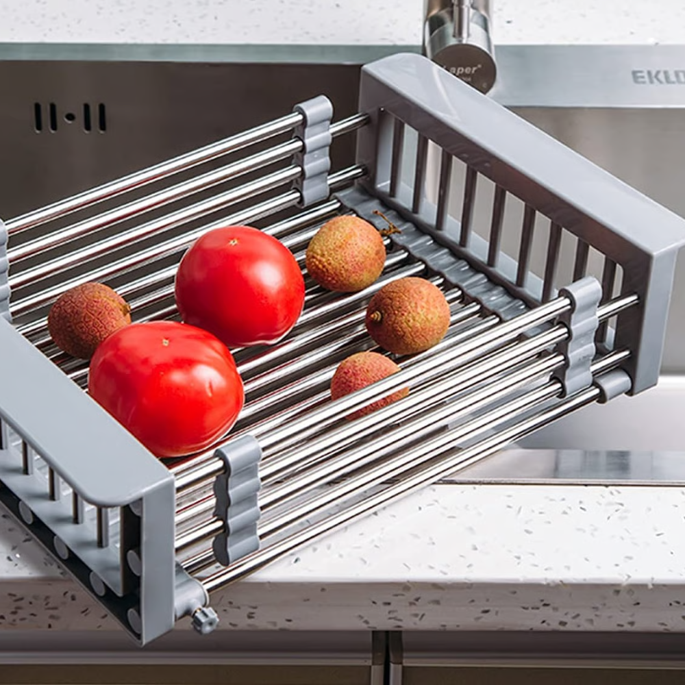 Der PullFlow™ verwandelt Ihre Spüle im Handumdrehen in eine stabile und platzsparende Abtropffläche für Geschirr, Gläser oder frisches Obst und Gemüse. Hergestellt aus lebensmittelechtem Edelstahl, ist dieses Gitter rostfrei, langlebig und einfach zu reinigen. Die verstellbare Breite und die rutschfesten ABS-Endkappen sorgen für einen sicheren Sitz in nahezu jeder Spüle. Ziehen Sie den PullFlow™ einfach heraus, wenn Sie ihn benötigen, und schieben Sie ihn nach Gebrauch wieder weg, um den gesamten Spülbereich freizugeben.