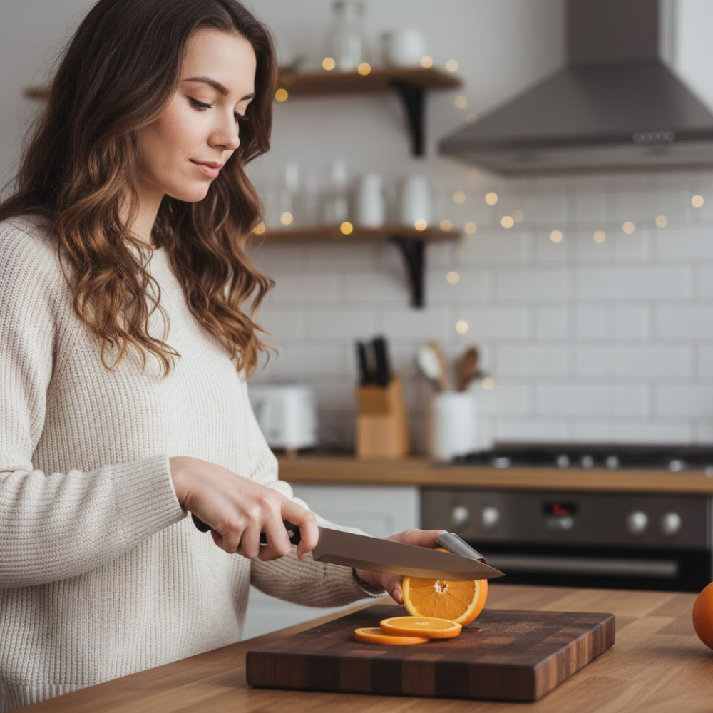 Stellen Sie sich vor, wie Sie die tägliche Vorbereitung für Stir-Fries oder Suppen in der Hälfte der Zeit erledigen, während das Messer sanft und sicher an der Edelstahlplatte entlanggleitet. SafeSlice™ ermöglicht Ihnen ein „Speed-Prepping“ im Autopilot-Modus, selbst wenn Sie gerade abgelenkt sind oder Ihren Kindern Fragen beantworten. Dieses Werkzeug schenkt nicht nur Ihnen neue Effizienz, sondern dient auch als Mentor für Ihre Liebsten: Es befähigt kleine Nachwuchsköche und Senioren mit nachlassender Geschicklichkeit, wieder sicher und unabhängig am Herd mitzuwirken. Machen Sie die Küche zu einer sicheren Zone für die ganze Familie und verwandeln Sie eine potenziell gefährliche Aufgabe in ein entspanntes, gemeinsames Erlebnis voller Stolz und Präzision.