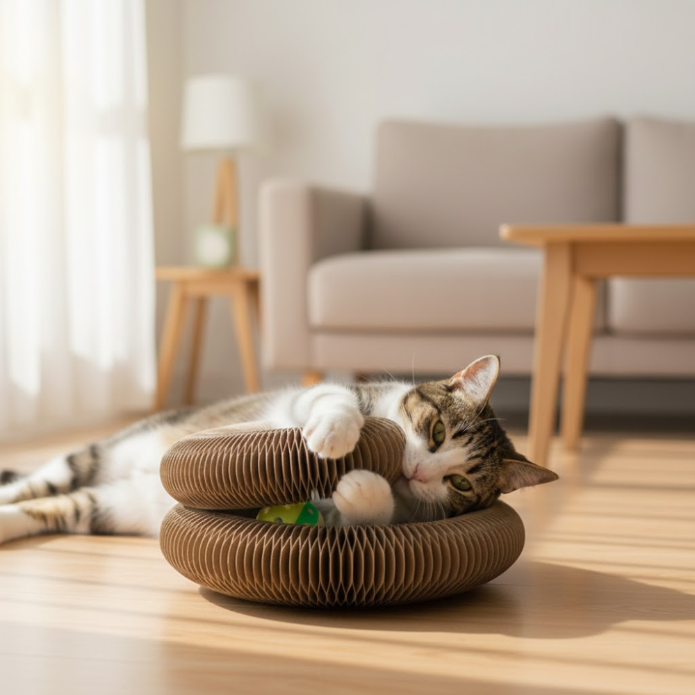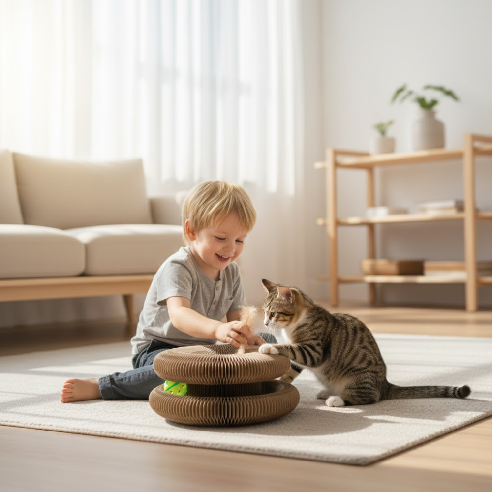Für Katzenhalter ist der Kampf um die Möbel oft zermürbend. Herkömmliche Kratzmatten werden schnell ignoriert, und die Katze kehrt zum Sofa zurück. ScratchLoop™ löst dieses Problem durch unwiderstehliche Vielfalt: Die raue Wellpappe zieht Krallen magisch an und lenkt den natürlichen Kratzinstinkt effektiv von Ihren Möbeln weg. Gleichzeitig sorgt die integrierte Kugelbahn für sofortige Action. Es ist die Rettung für „Furniture First“ Dekorateure und gelangweilte Katzen, die endlich eine spannende, erlaubte Alternative zum Sofa brauchen.