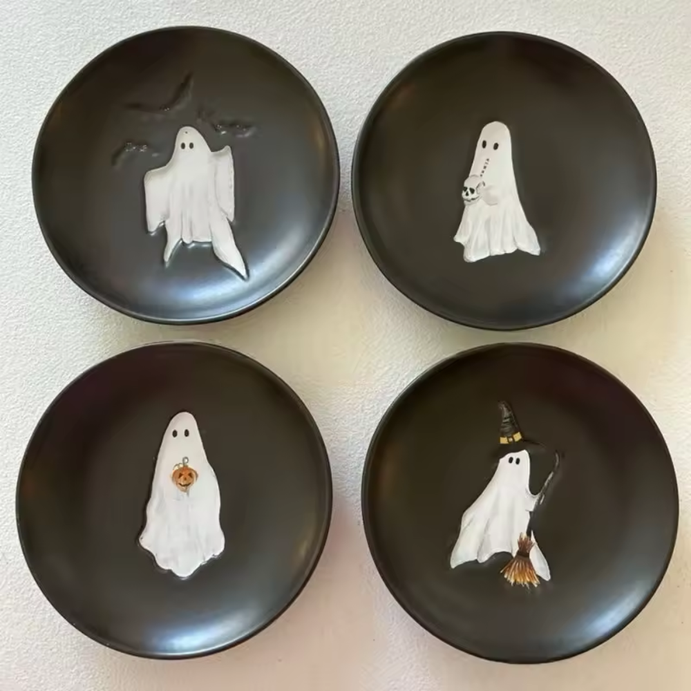 Dieses 4er-Set aus 6,75-Zoll-Tellern begeistert mit gruseligen, aber charmanten Designs, die jede Tafel sofort in eine echte Halloween-Szene verwandeln. Ob Käsewürfel, Cupcakes, Mini-Burger oder bunte Süßigkeiten – auf diesen Tellern sehen Snacks gleich doppelt so verlockend (und unheimlich) aus. Robust genug für Partys, aber leicht und dekorativ, sind sie die ideale Wahl für Kinderfeste wie auch für schaurige Erwachsenen-Abende.