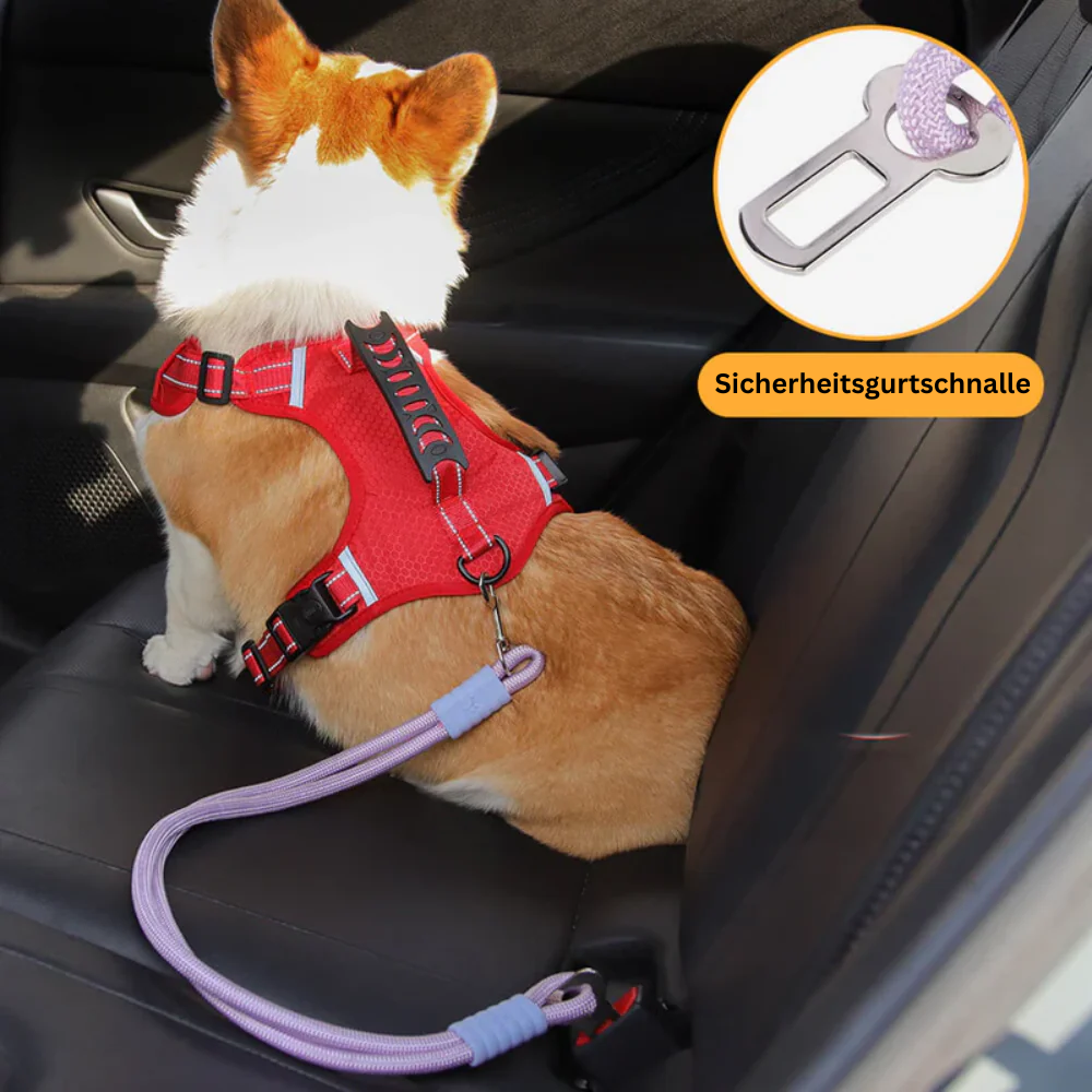 Der standardisierte Clip passt in fast jedes Gurtschloss und die Länge ist verstellbar, sodass er für verschiedene Hunderassen geeignet ist.
