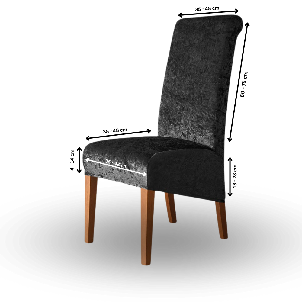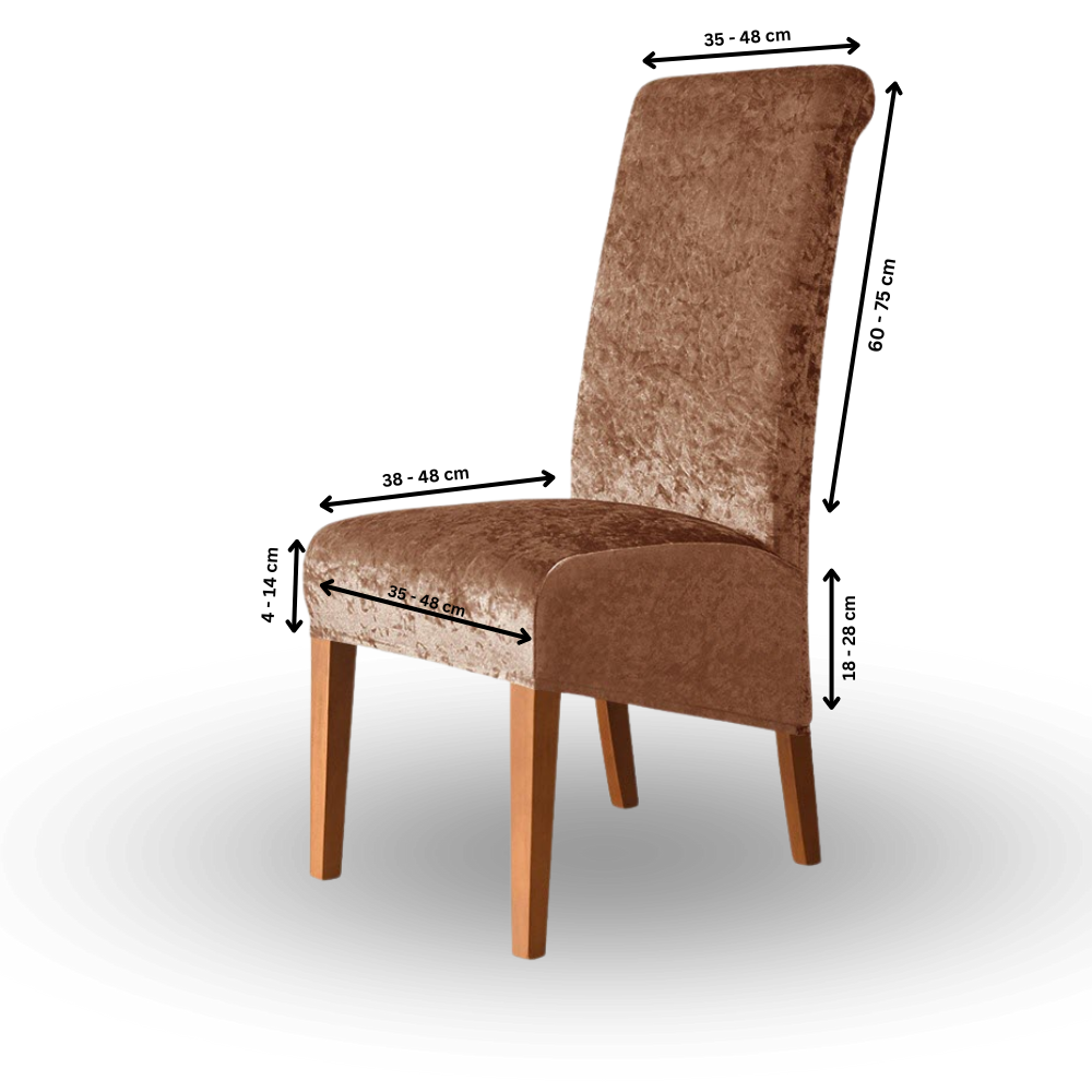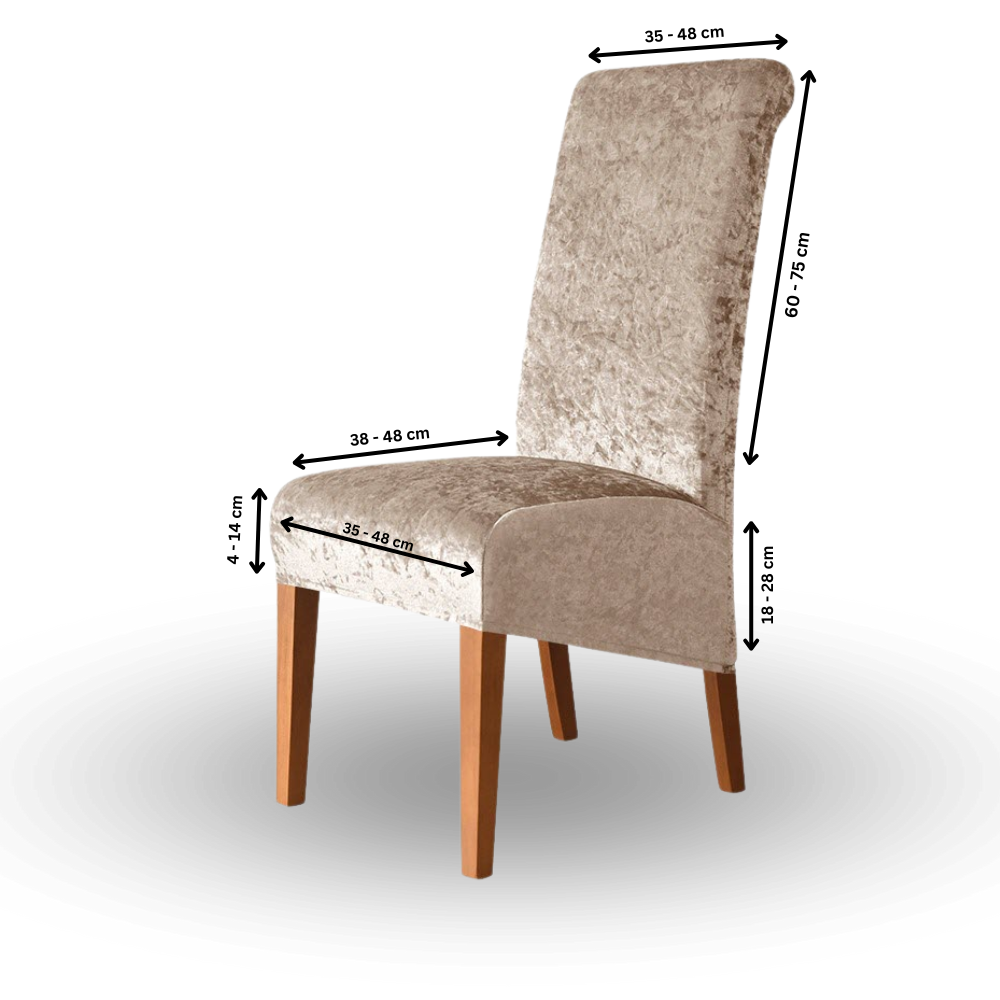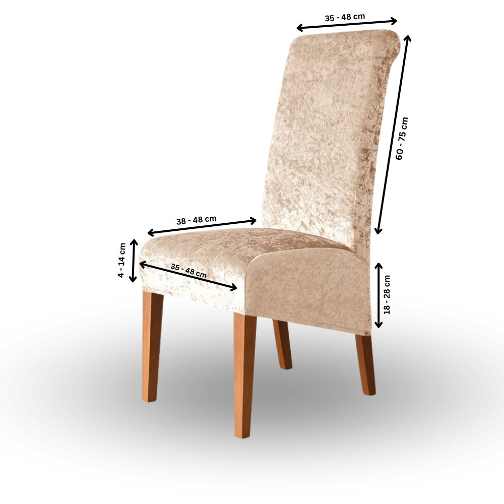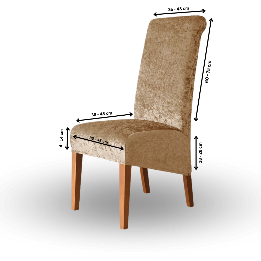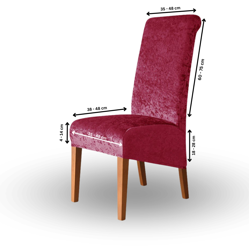 Unsere Bezüge sind elastisch und passen auf die meisten Standardstühle. Genaue Maße finden Sie in der Produktbeschreibung.
