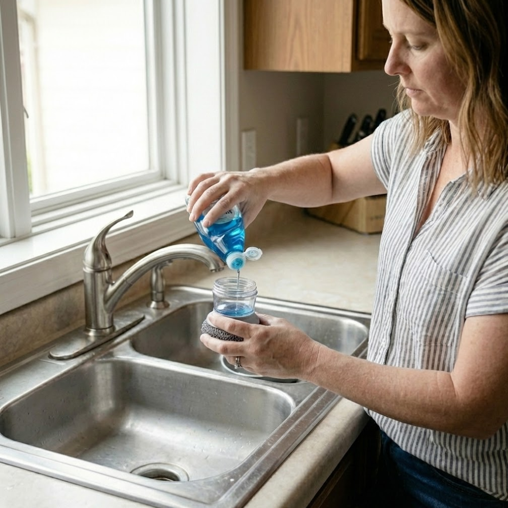 In einer effizienten Küche ist der Abwasch oft eine lästige Unterbrechung, besonders wenn man ständig zwischen Flasche, Schwamm und Kratzer wechseln muss. Herkömmliche Schwämme werden zudem schnell unhygienisch und klebrig. SudzBloc™ revolutioniert Ihren Abwasch: Mit dem integrierten Seifenspender haben Sie das Spülmittel immer direkt „in der Hand“ und dosieren exakt per Knopfdruck. Es ist die organisierte Lösung für alle, die eine aufgeräumte Spüle lieben und den Prozess so schnell und sauber wie möglich gestalten wollen.